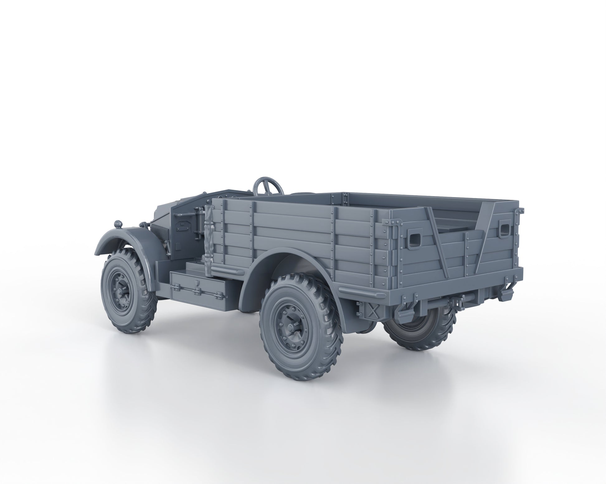 La plupart de nos modèles sont optimisés pour une impression au 1/56 (pour jeux de wargame avec des figurines 28mm). Ils supportent très bien un léger agrandissement ou une réduction d'échelle. Veuillez noter qu'à de petites échelles certains détails pourraient manquer en raison de leur extrême finesse (antennes, rétroviseurs, ...)